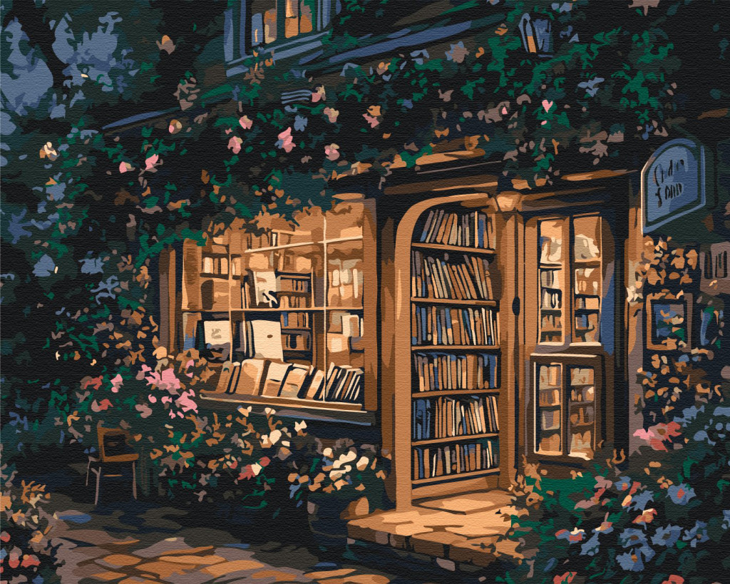 Gemütliche Buchhandlung - Malen-nach-Zahlen-Set auf Keilrahmen 40x50