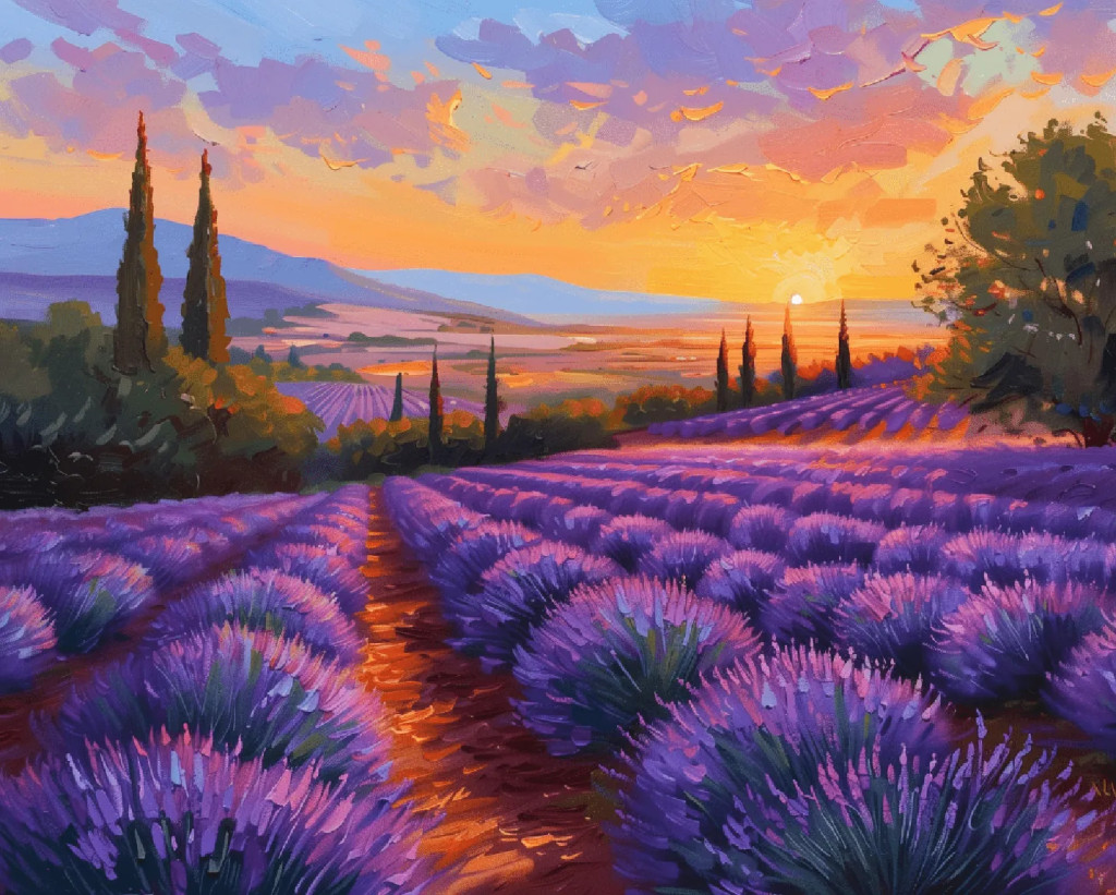 Végtelen levendulamezők - Számfestő készlet kereten 40x50