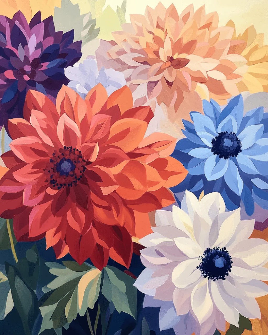 Keretre feszített, számozott kifestőkészlet előrajzolt vászonnal, akrilfestékekkel, ecsettel és segédlettel.