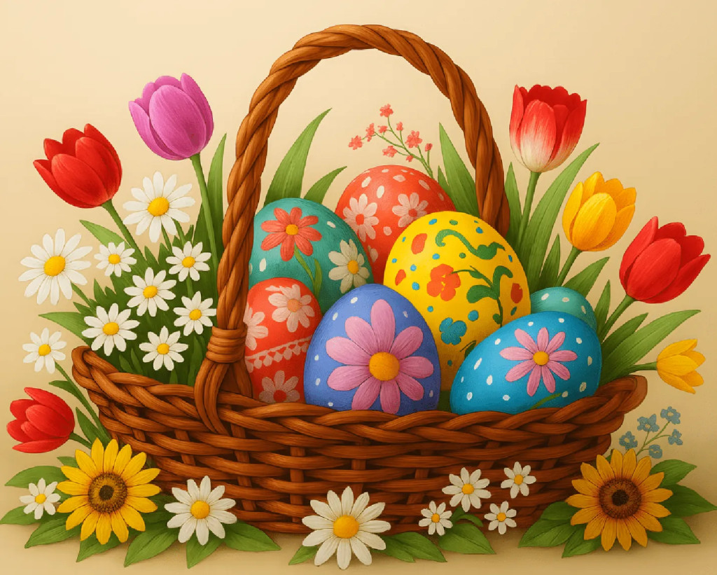 Virágos húsvéti kosár - Számfestő készlet kereten 40x50