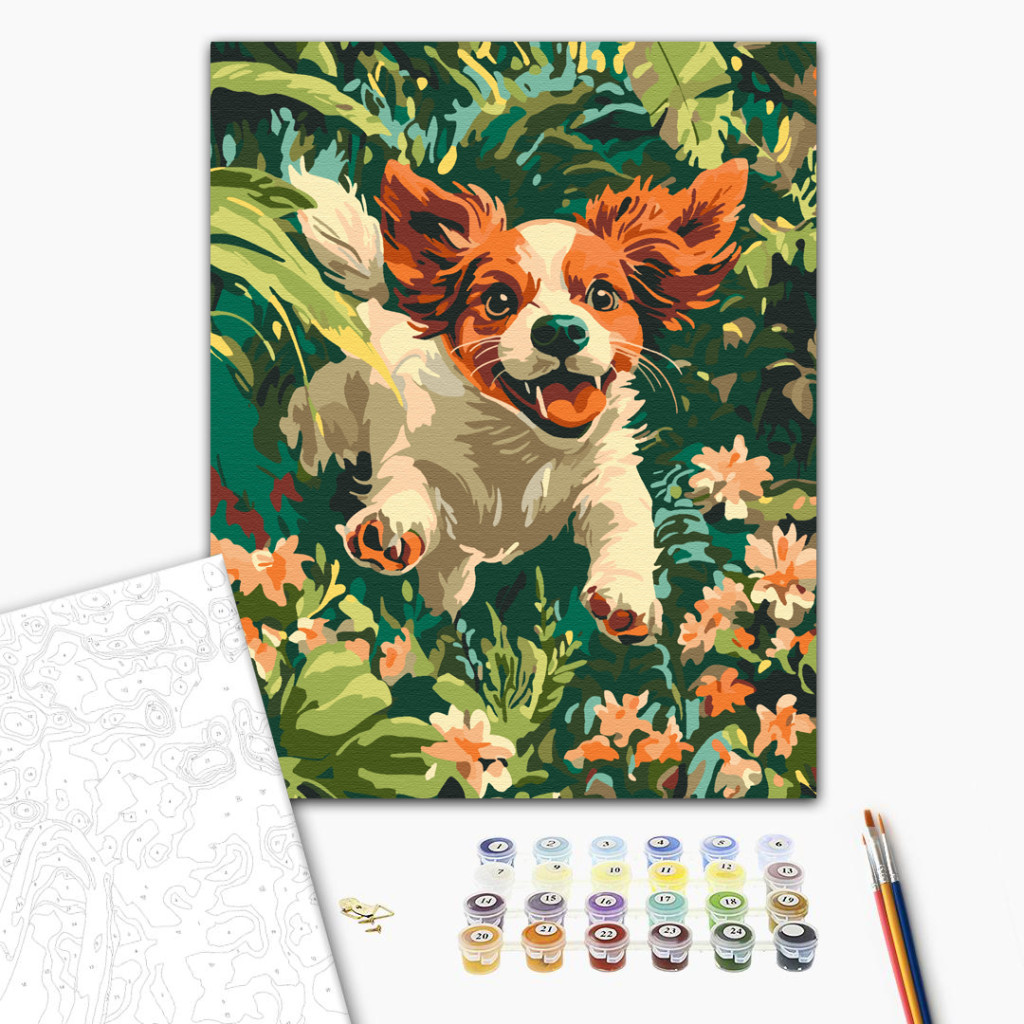 Verspielter Welpe - Malen-nach-Zahlen-Set auf Keilrahmen 40x50