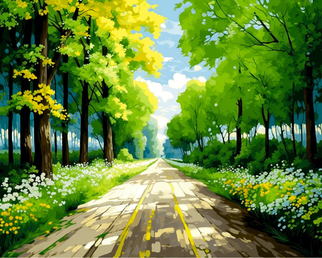 Keretre feszített, számozott kifestőkészlet előrajzolt vászonnal, akrilfestékekkel, ecsettel és segédlettel.