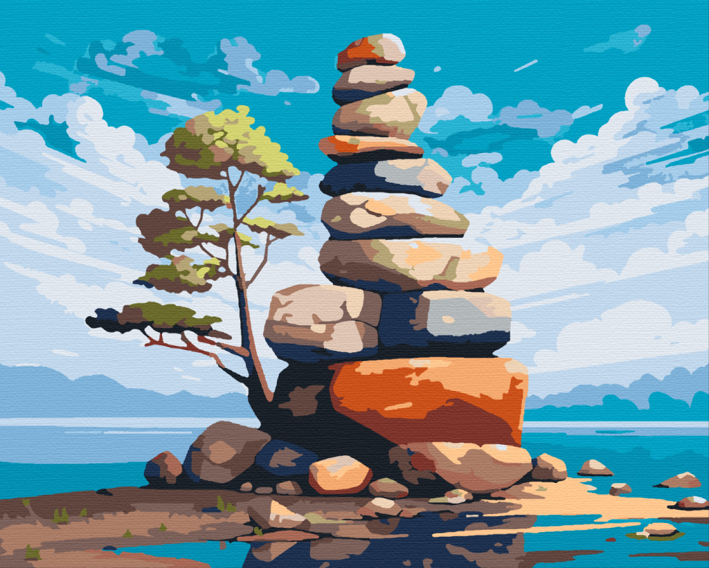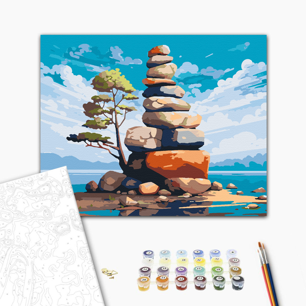 Keretre feszített, számozott kifestőkészlet előrajzolt vászonnal, akrilfestékekkel, ecsettel és segédlettel.