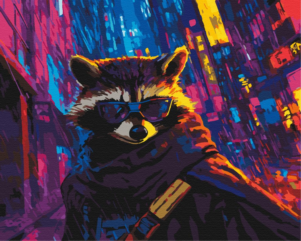 Cyberpunk-Waschbär - Malen-nach-Zahlen-Set auf Keilrahmen 40x50