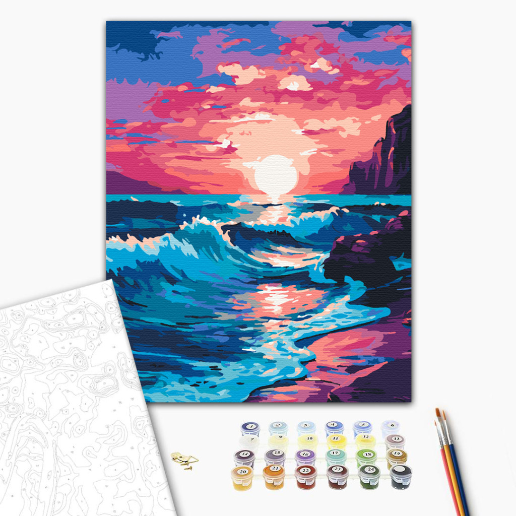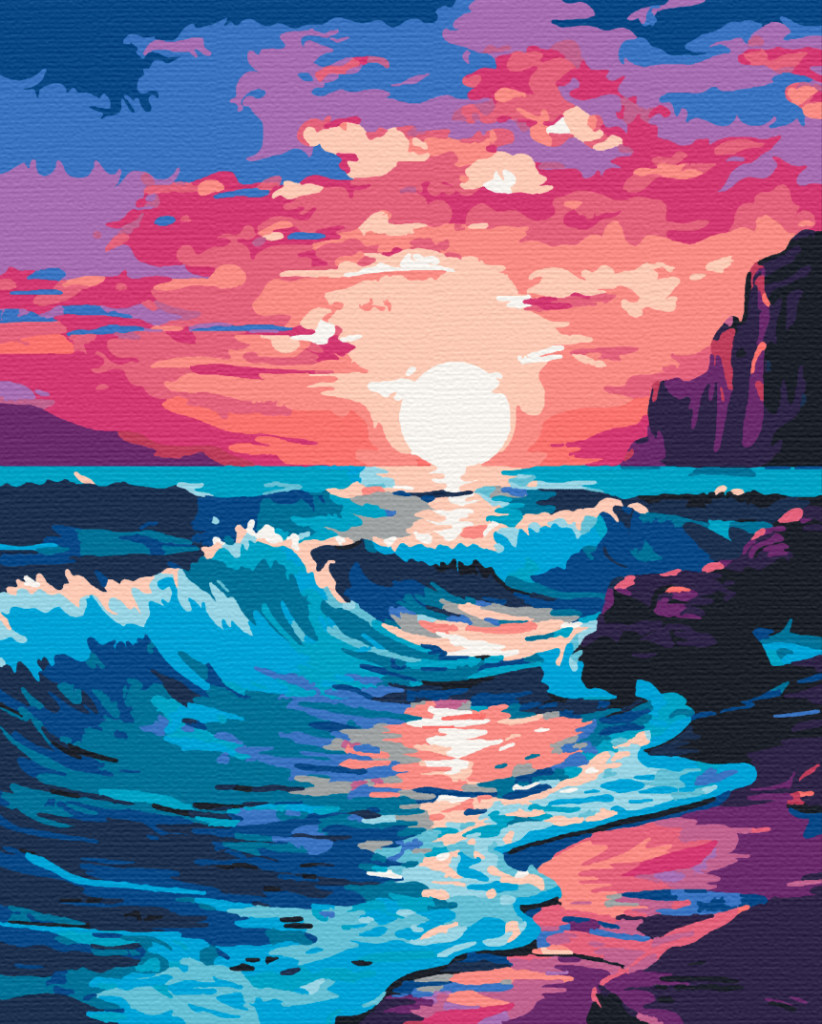 Rózsaszín naplemente - Számfestő készlet kereten 40x50