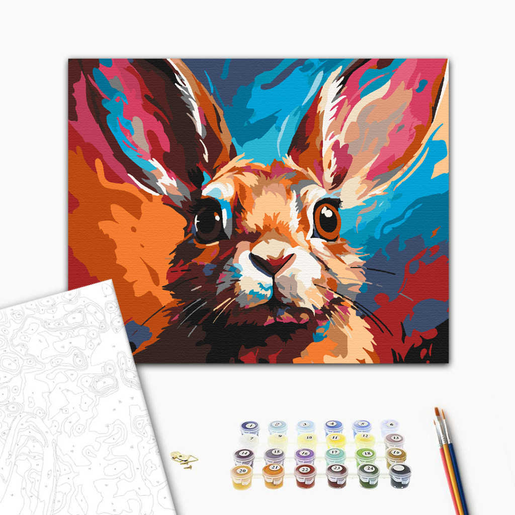 Keretre feszített, számozott kifestőkészlet előrajzolt vászonnal, akrilfestékekkel, ecsettel és segédlettel.