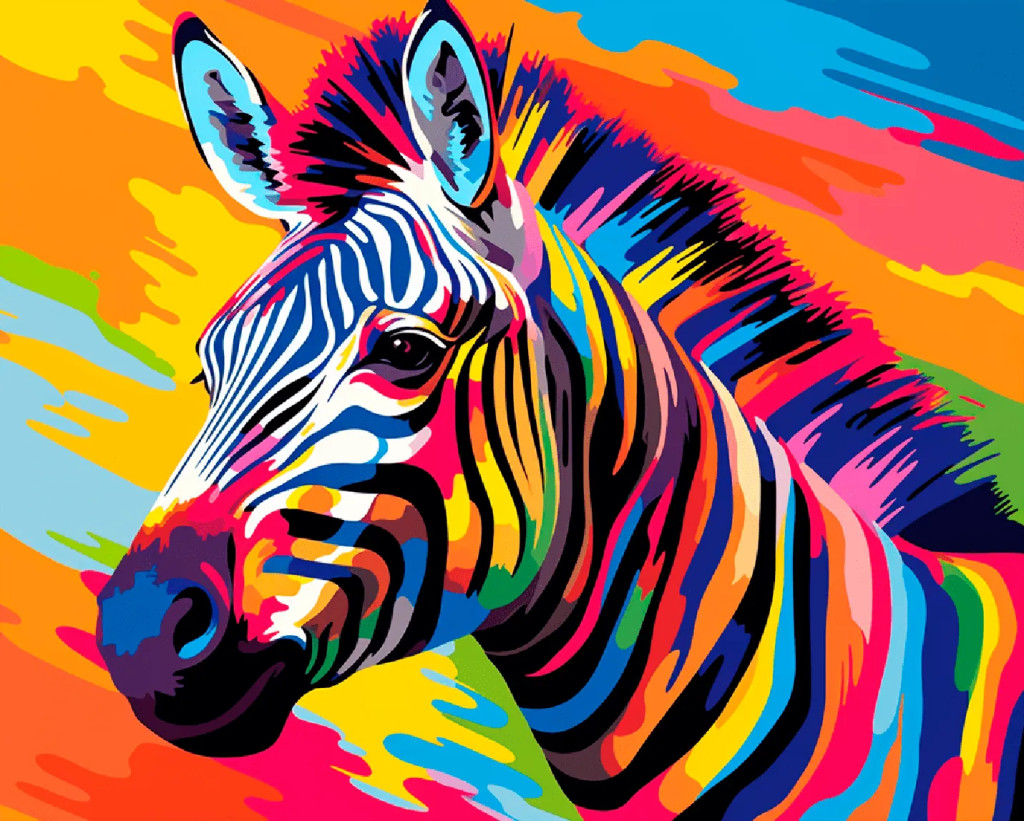 Szivárvány zebra - Számfestő készlet kereten 40x50