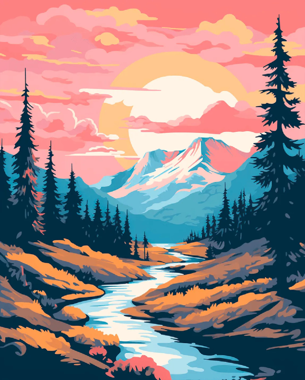 Rózsaszín ég - Számfestő készlet kereten 40x50