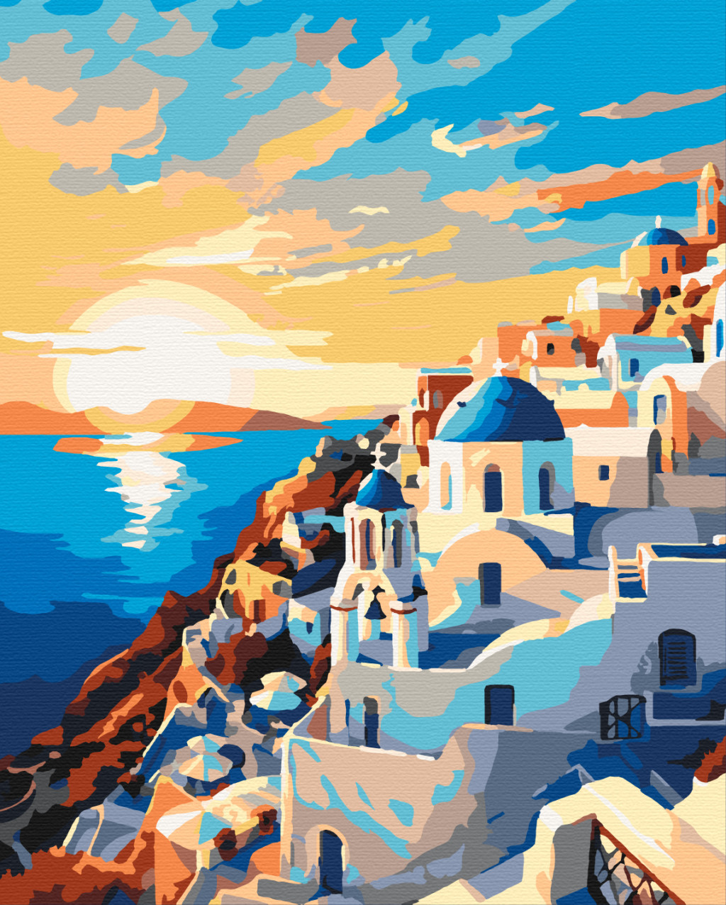 Santorini naplementék - Számfestő készlet kereten 40x50