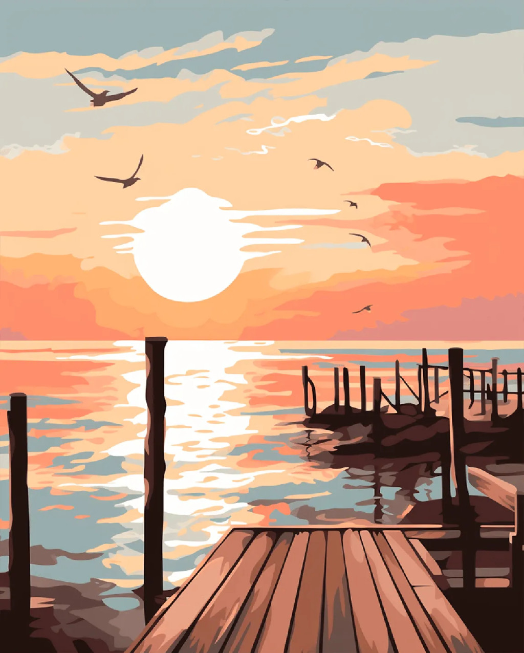 Napnyugta dokk - Számfestő készlet kereten 40x50