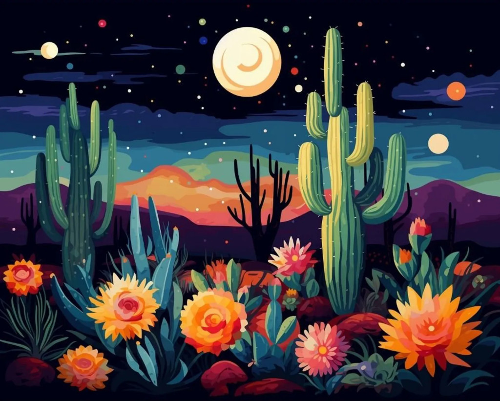 Keretre feszített, számozott kifestőkészlet előrajzolt vászonnal, akrilfestékekkel, ecsettel és segédlettel.