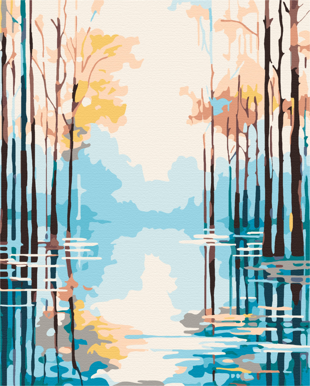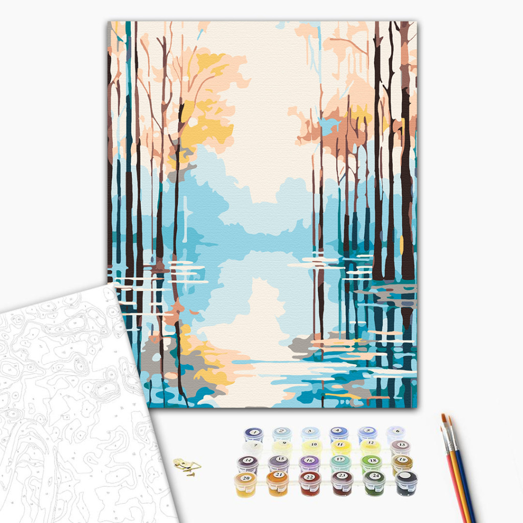 Elárasztott erdő - Számfestő készlet kereten 40x50