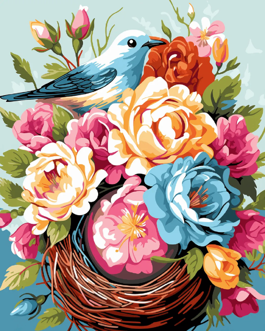Virágos madárfészek - Számfestő készlet kereten 40x50