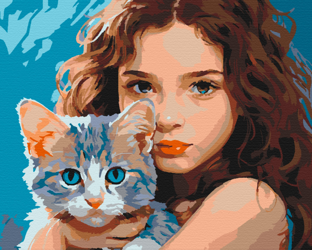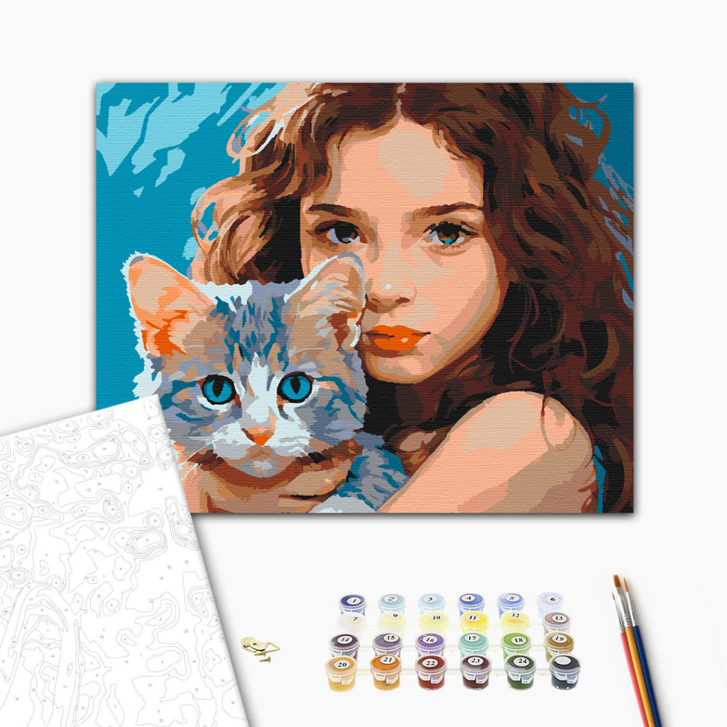 Kislány és cicája - Számfestő készlet kereten 40x50