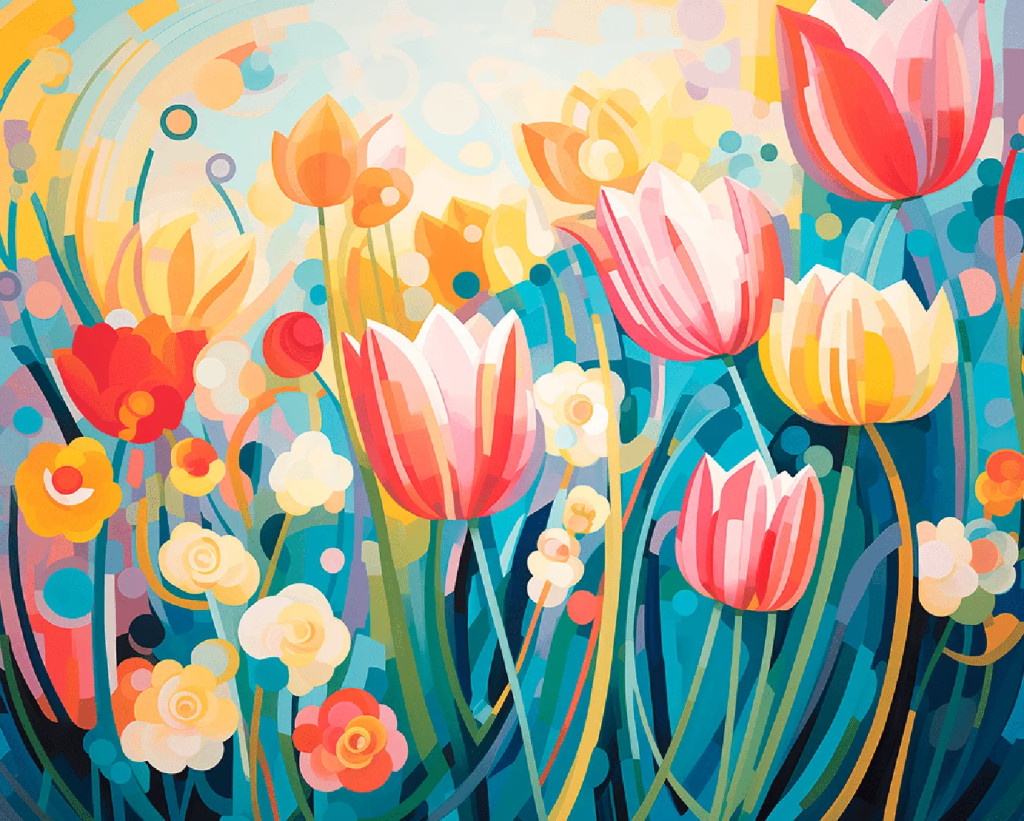 Keretre feszített, számozott kifestőkészlet előrajzolt vászonnal, akrilfestékekkel, ecsettel és segédlettel.