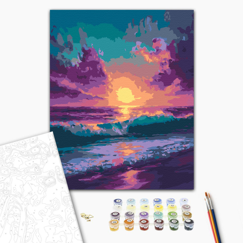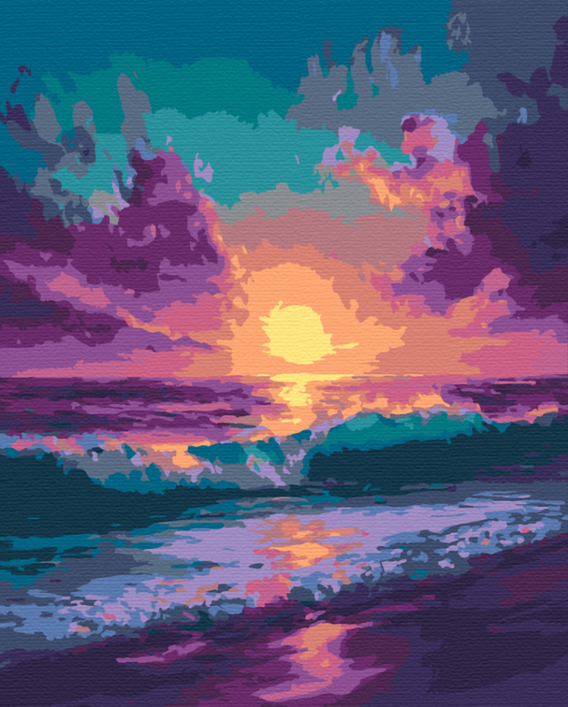 Keretre feszített, számozott kifestőkészlet előrajzolt vászonnal, akrilfestékekkel, ecsettel és segédlettel.