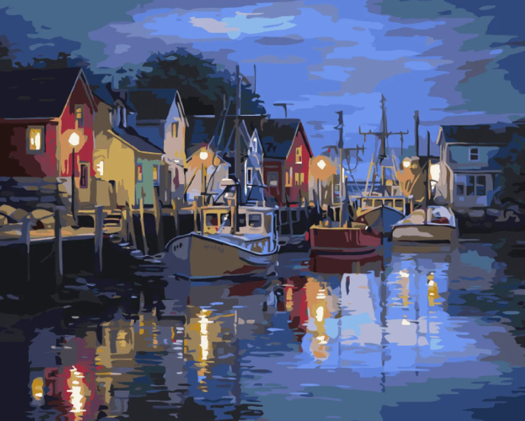 Kikötői fények - Számfestő készlet kereten 40x50