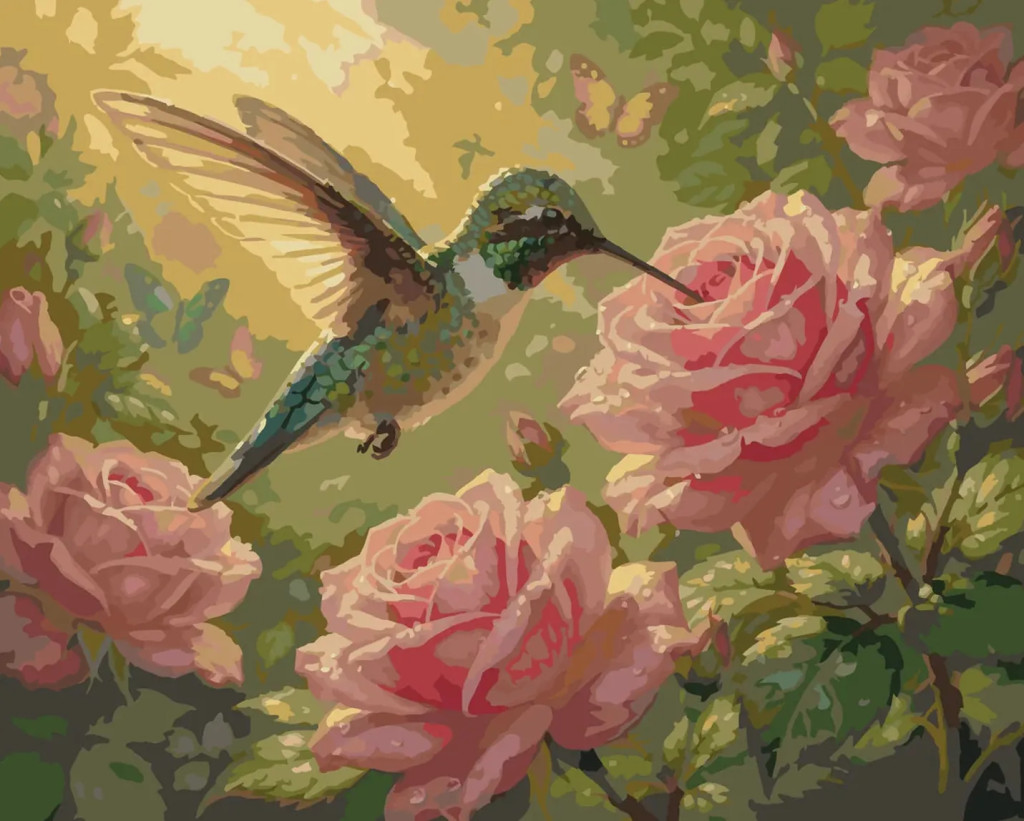Kolibri és rózsák - Számfestő készlet kereten 40x50