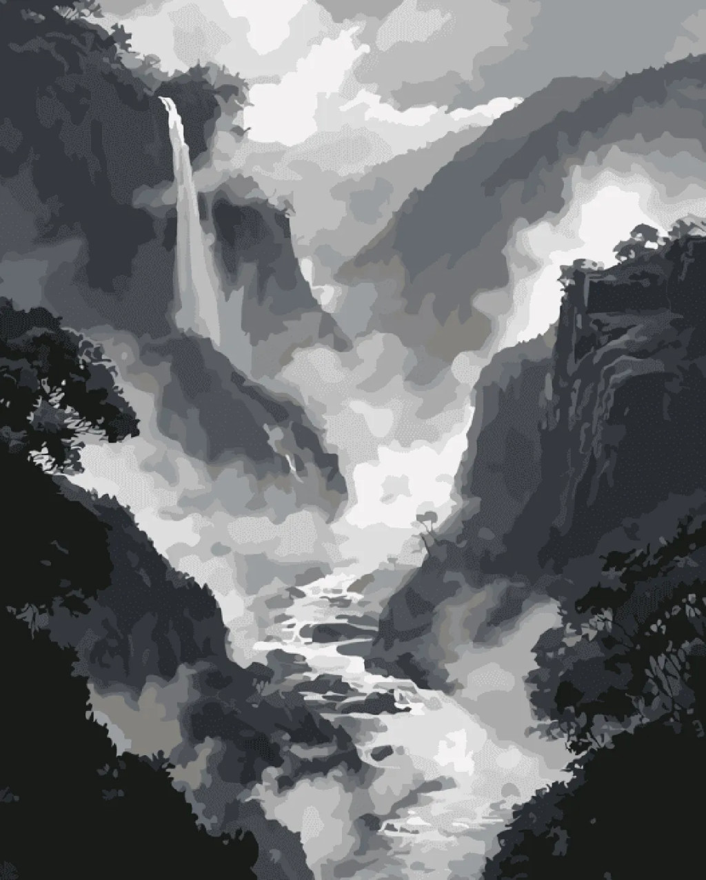 Ködös vízesés - Számfestő készlet kereten 40x50