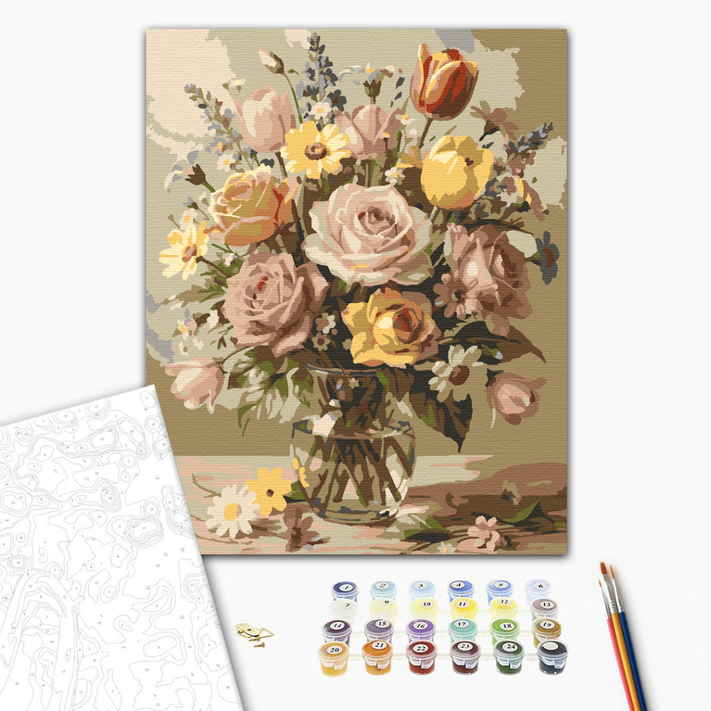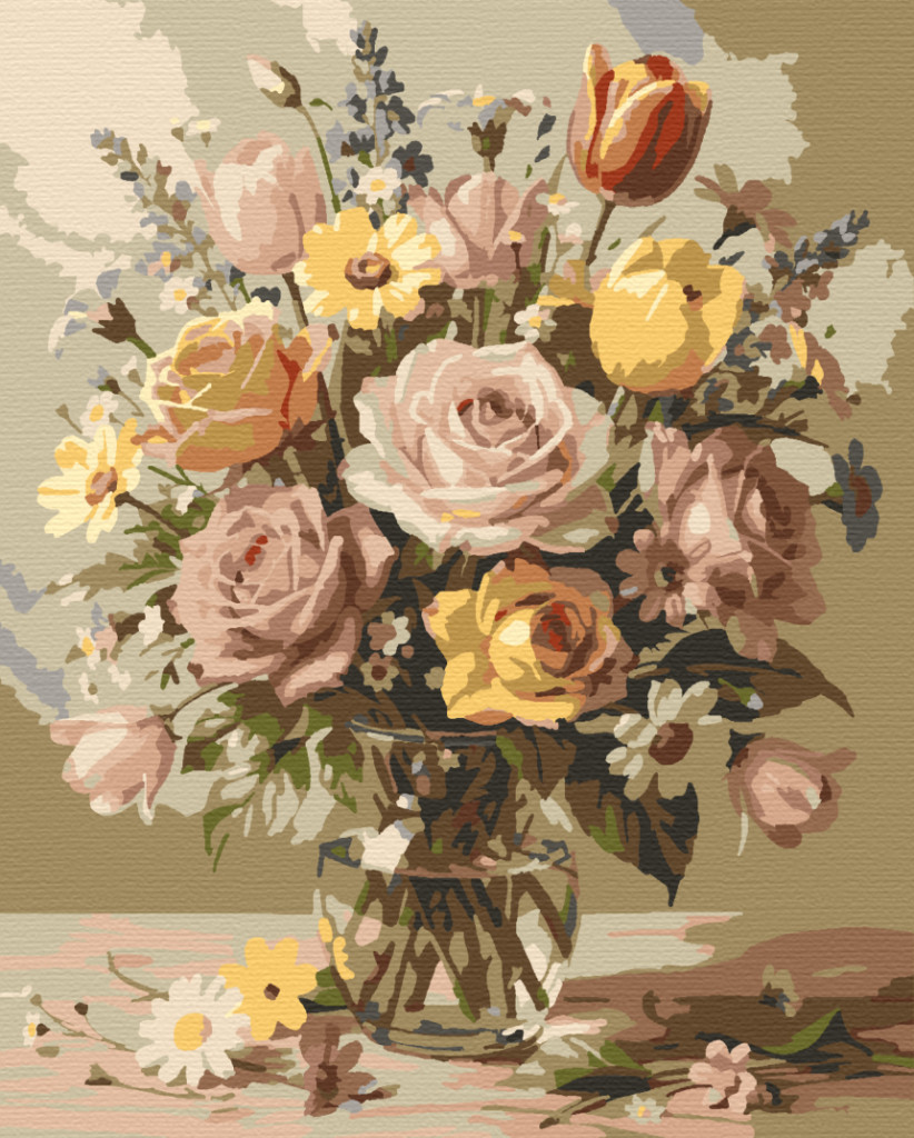 Rózsa és tulipán csokor - Számfestő készlet kereten 40x50