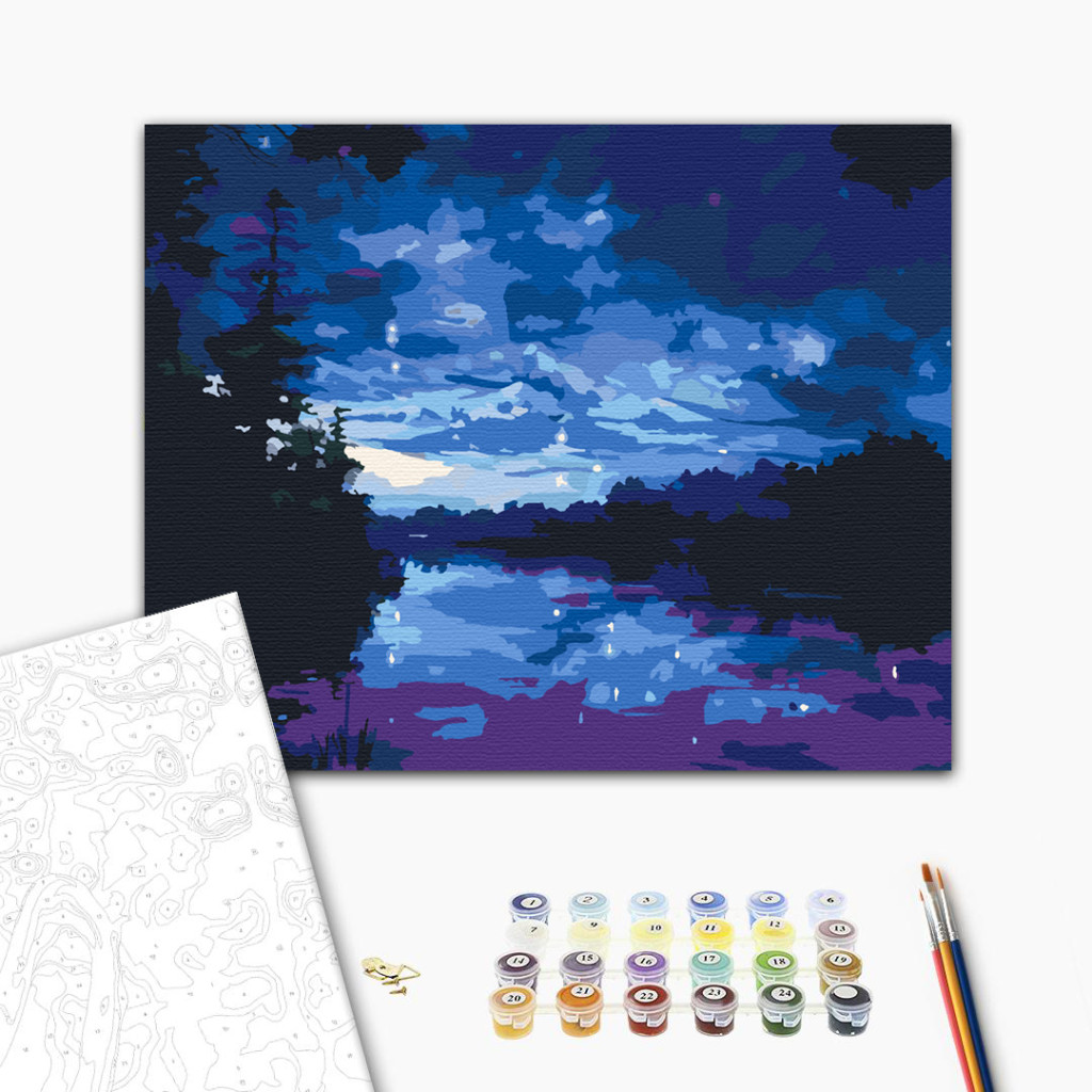 Csillagos éjszakai nyugalom - Számfestő készlet kereten 40x50