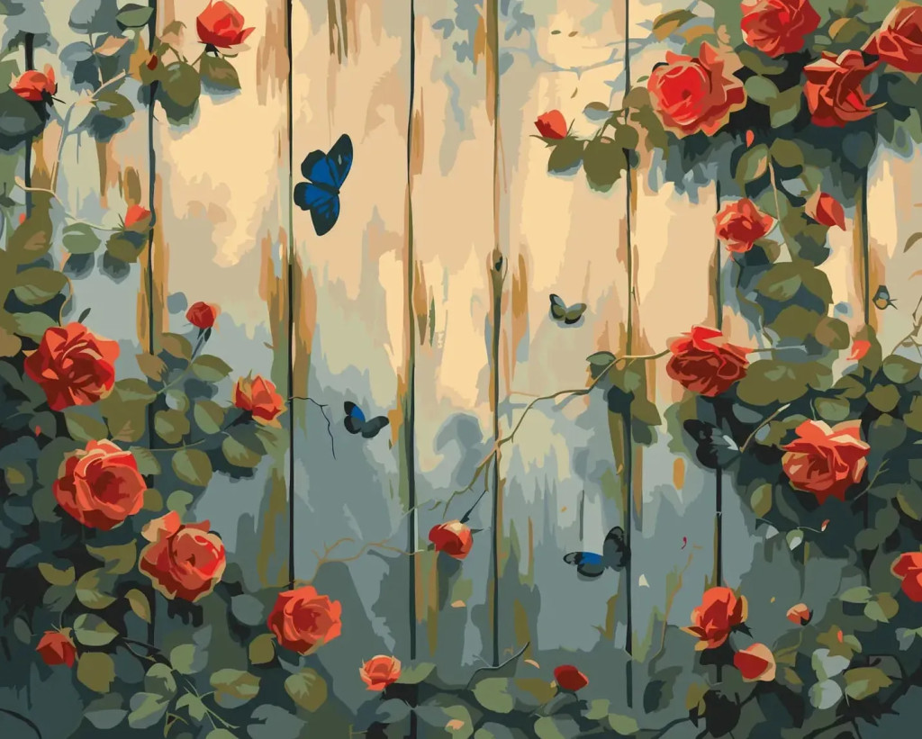 Rózsák és pillangók - Számfestő készlet kereten 40x50