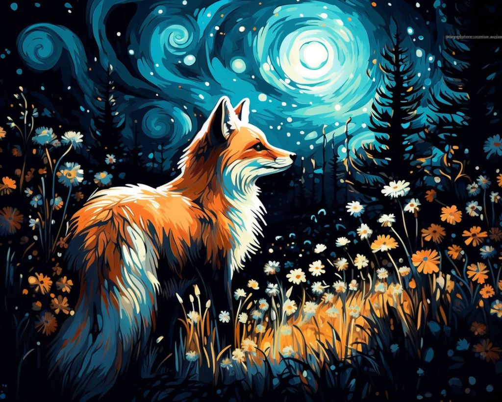 Róka a csillagos réten - Számfestő készlet kereten 40x50