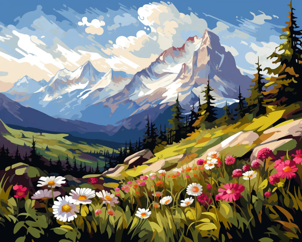 Alpesi virágok - Számfestő készlet kereten 40x50