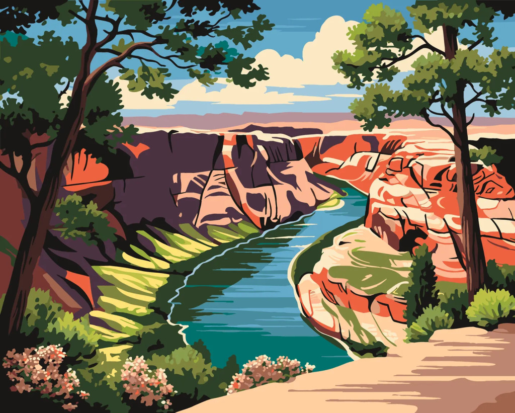 Keretre feszített, számozott kifestőkészlet előrajzolt vászonnal, akrilfestékekkel, ecsettel és segédlettel.