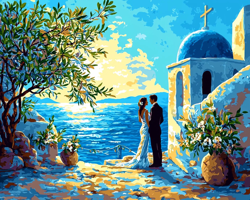 Kékbe írt szerelem - Számfestő készlet kereten 40x50