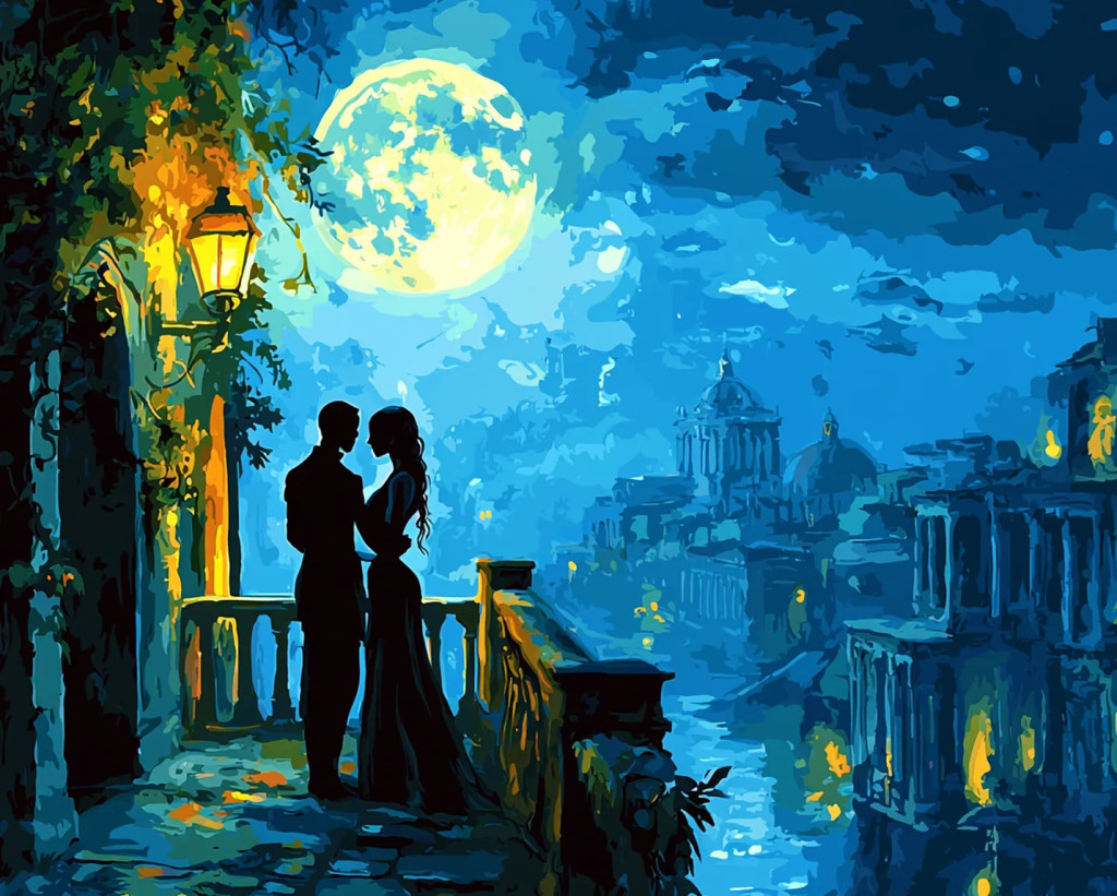 Szerelem a Holdfényben - Számfestő készlet kereten 40x50