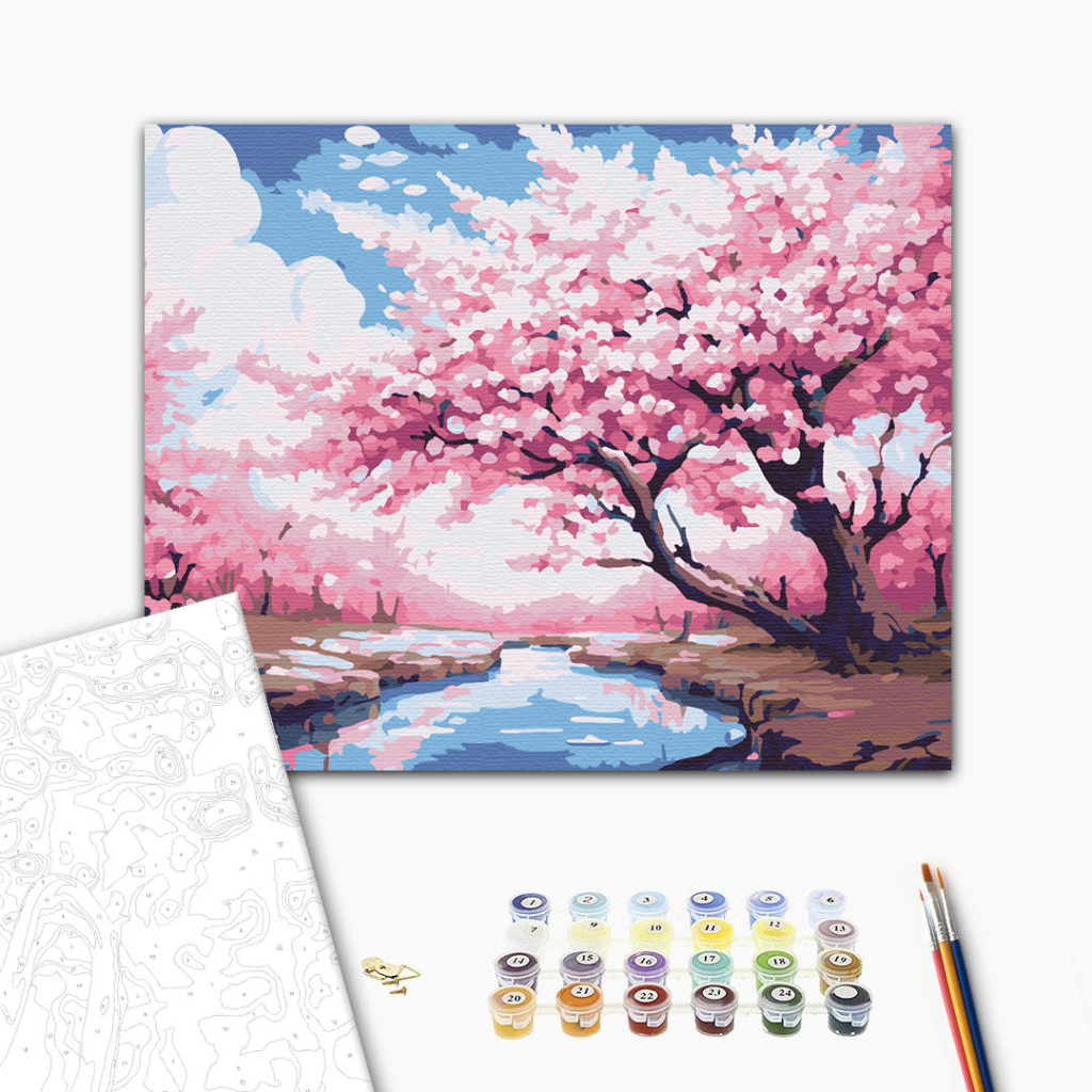 Tavaszi cseresznyeliget - Számfestő készlet kereten 40x50
