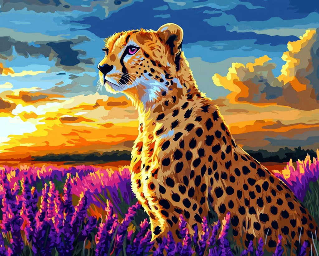 Gepárd a naplementében - Számfestő készlet kereten 40x50