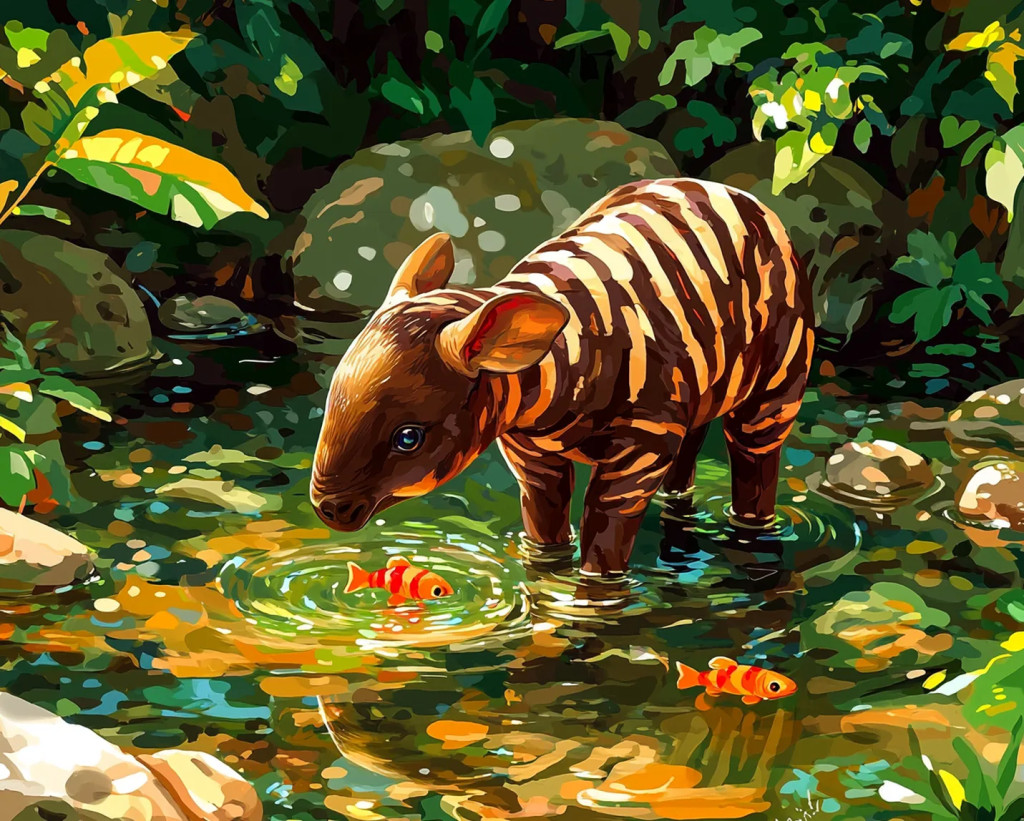 Kis tapír és az aranyhalak - Számfestő készlet kereten 40x50