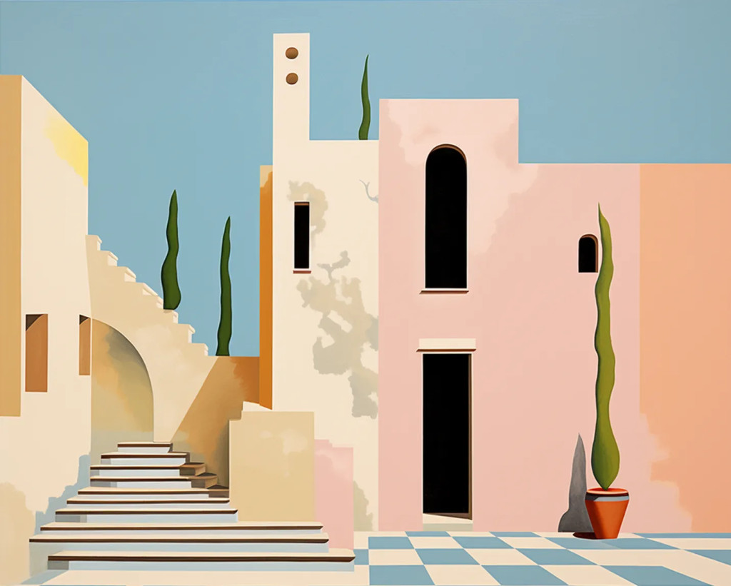 Mediterrán udvar - Számfestő készlet kereten 40x50