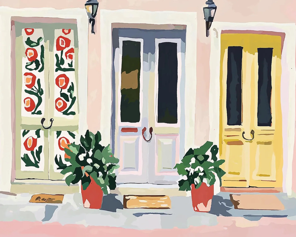 Pasztell kapualjak - Számfestő készlet kereten 40x50