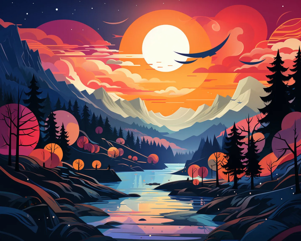 Keretre feszített, számozott kifestőkészlet előrajzolt vászonnal, akrilfestékekkel, ecsettel és segédlettel.