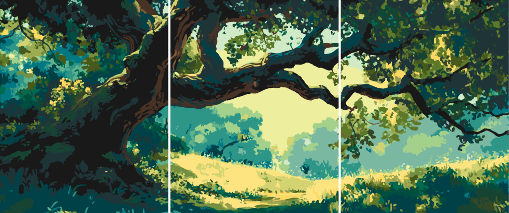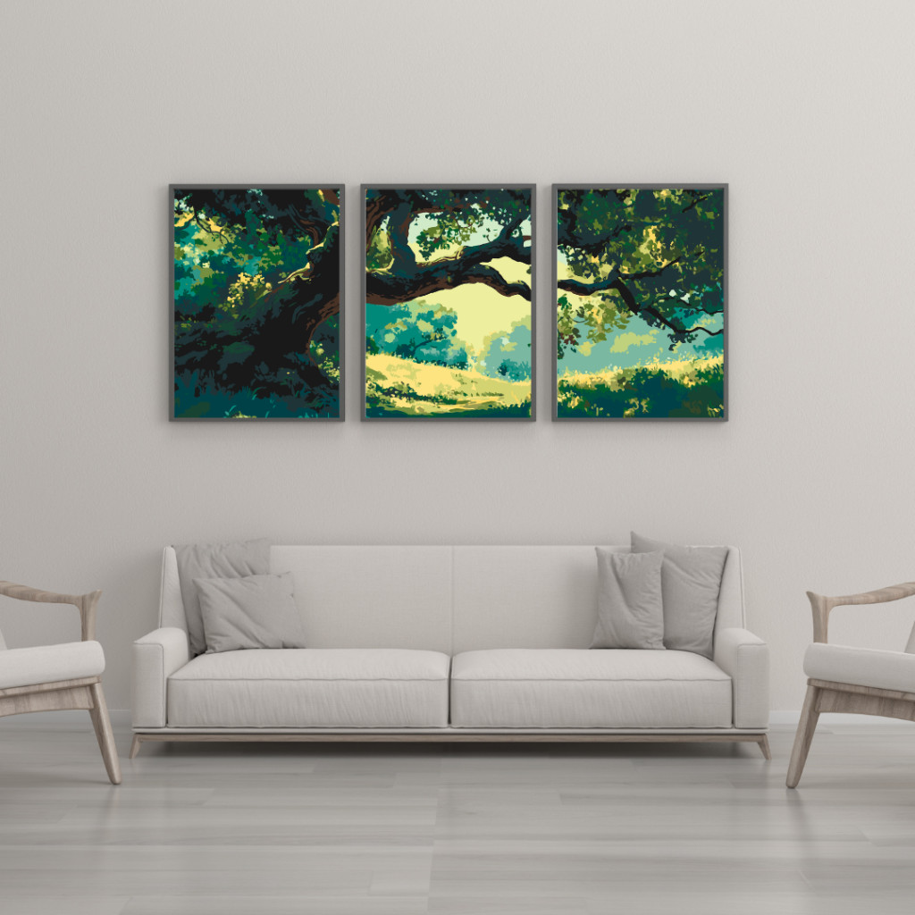 Mystischer Baum 2 - 3-teiliges Malen-nach-Zahlen-Set auf Leinwand