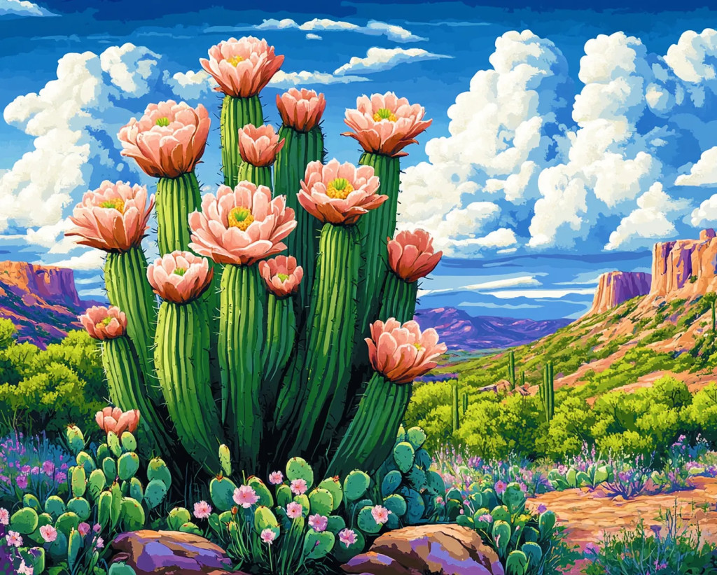 Kaktuszvirág - Számfestő készlet kereten 40x50