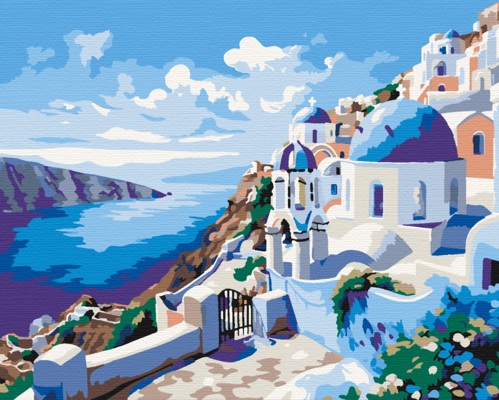 Santorini látképe - Számfestő készlet kereten 40x50