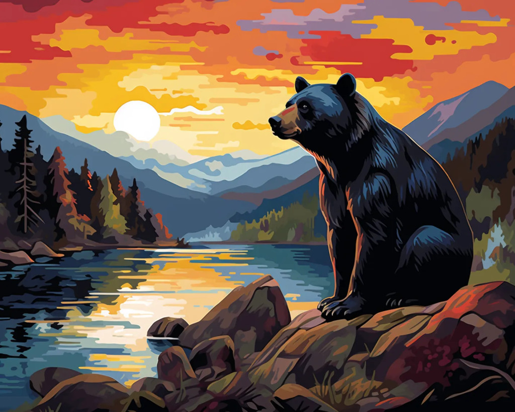 Keretre feszített, számozott kifestőkészlet előrajzolt vászonnal, akrilfestékekkel, ecsettel és segédlettel.