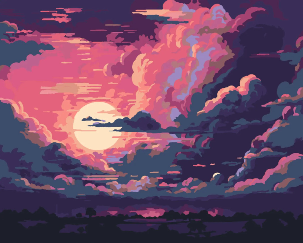 Felhős éjszaka - Számfestő készlet kereten 40x50