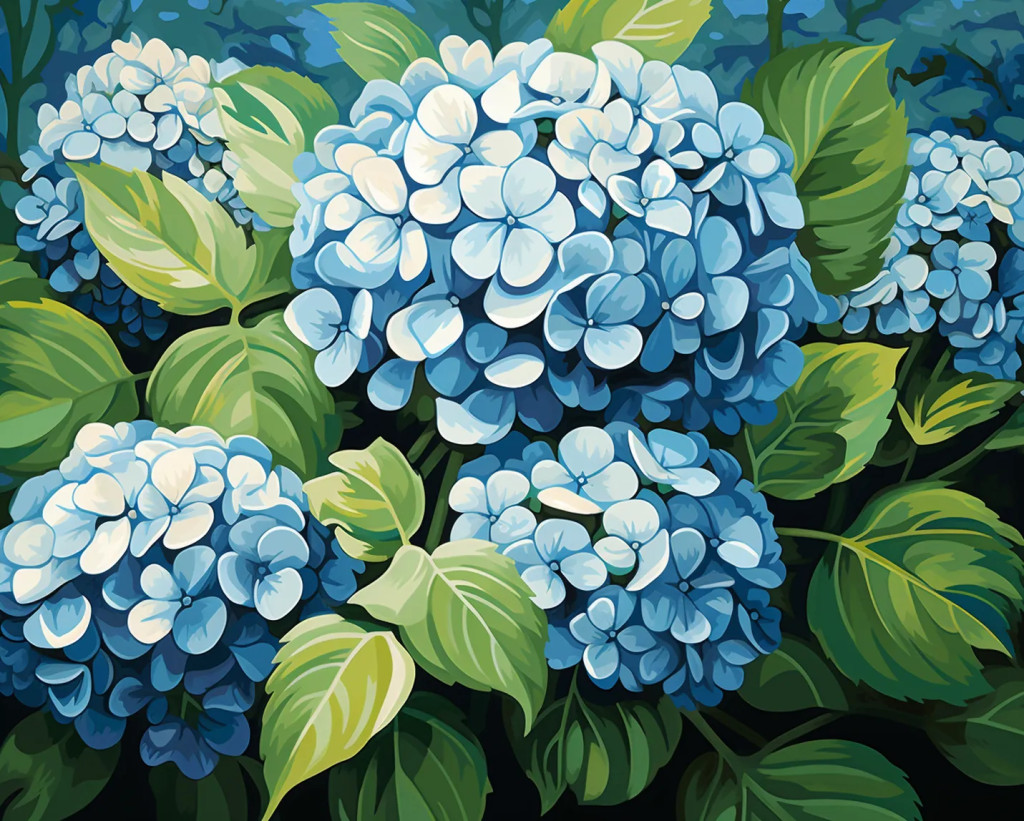Fürtös hortenzia - Számfestő készlet kereten 40x50