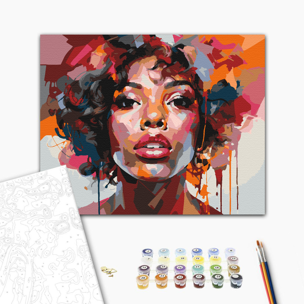 Színes női portré - Számfestő készlet kereten 40x50