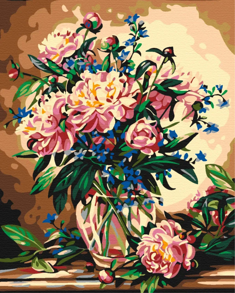 Virágcsendélet meleg fényben - Számfestő készlet kereten 40x38