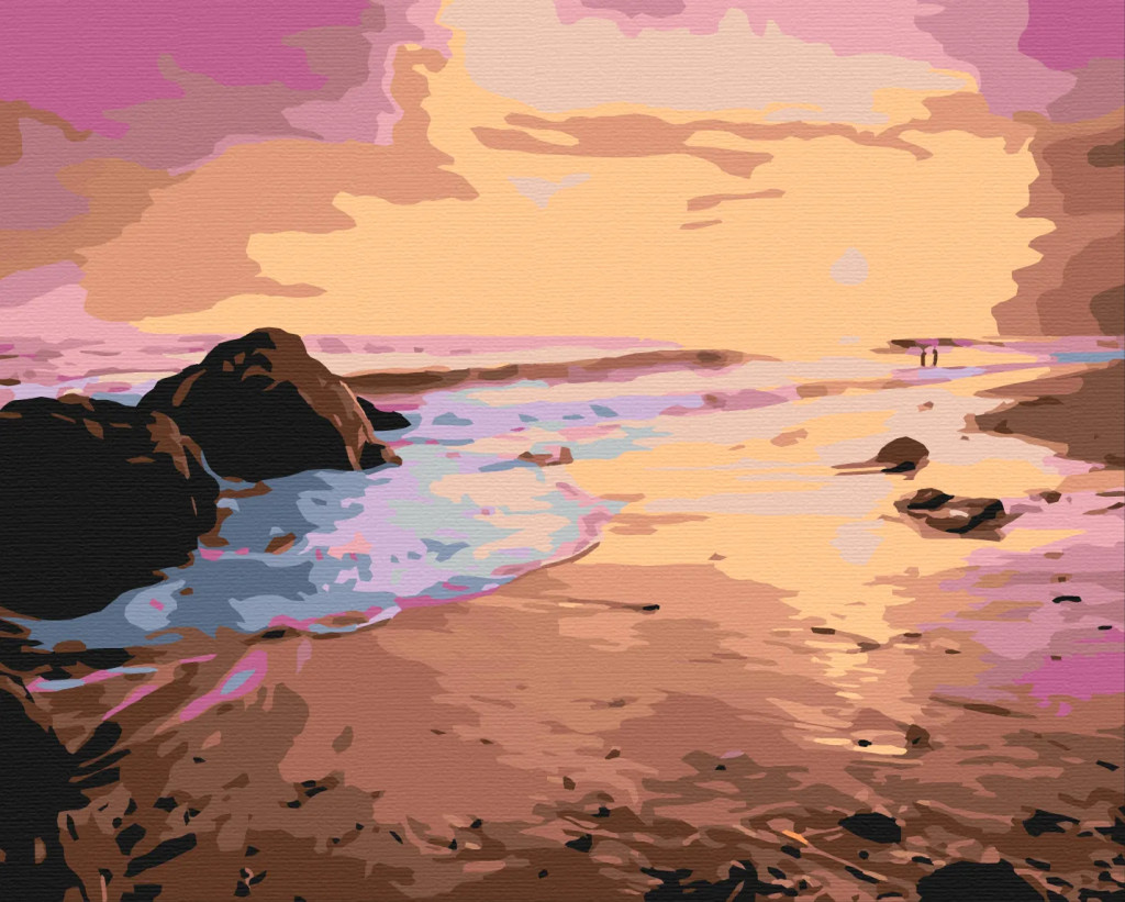 Rózsaszín alkony a hullámokon - Számfestő készlet kereten 40x44