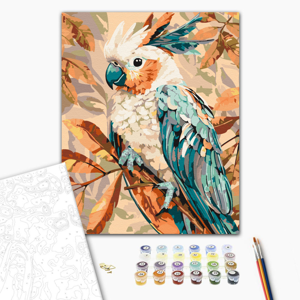 Papagei auf dem Herbstast - Malen-nach-Zahlen-Set auf Keilrahmen 40x50