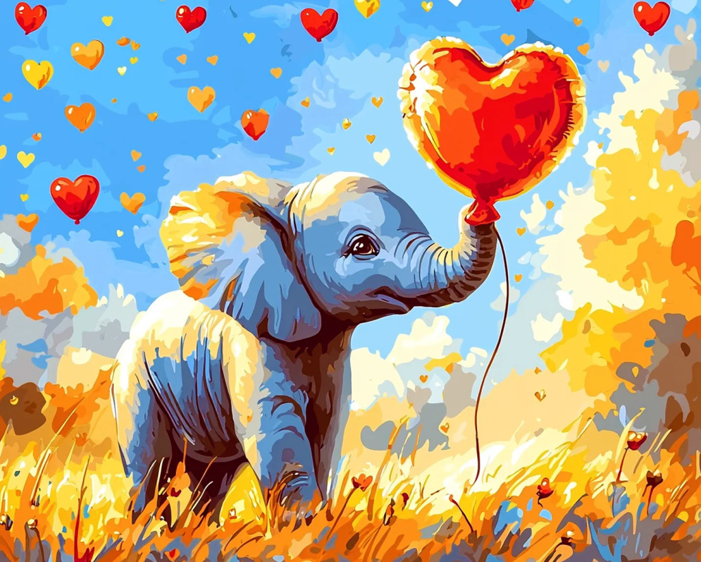 A kis elefánt szeretete - Számfestő készlet kereten 40x50