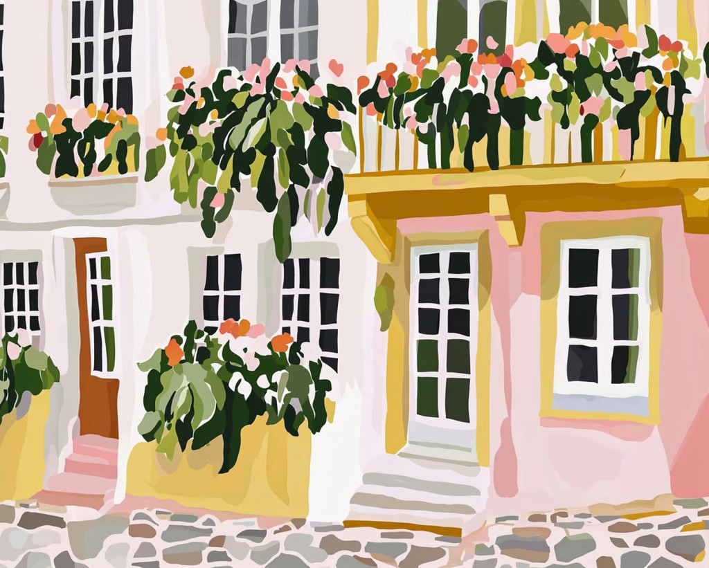 Virágok az erkélyen - Számfestő készlet kereten 40x50