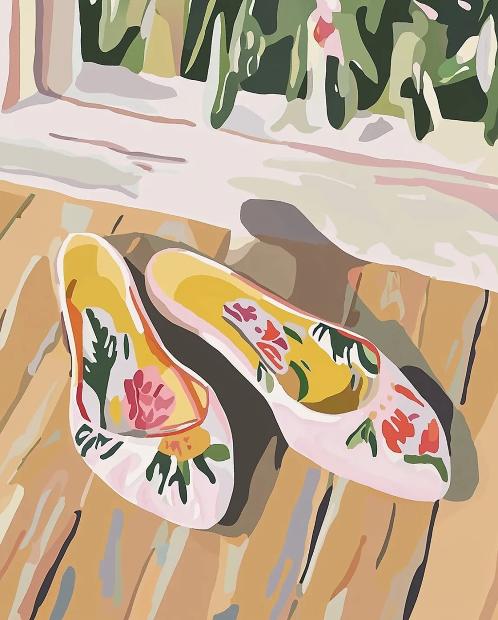 Az előrajzolt minta alapján a vonalakkal határolt területet fessük ki a meghatározott számú festékekkel. A festést a nagyobb felületek kitöltésével érdemes kezdeni és haladni az egyre kisebbek felé. Segítséget jelent, ha gyakran ránézünk az eredeti képre. A vonalakkal határolt területek színeit, az árnyalásokat nem kell precízen a vonalak mentén elkülönítve festeni, hanem kicsit össze is mosódhat, keveredhet, így a kész kép művészibb hatású lesz.